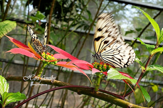 往裡面走首先看到常見的「鳳蝶」,金獅湖蝴蝶園裡有30多種、300多隻成蝶,看見作多的莫過於大鳳蝶,看著翩翩飛舞的蝴蝶不自覺動作也跟著優雅起來,還要放慢腳步與呼吸聲,免得靠近要拍時,蝶仙子們就飛走啦!