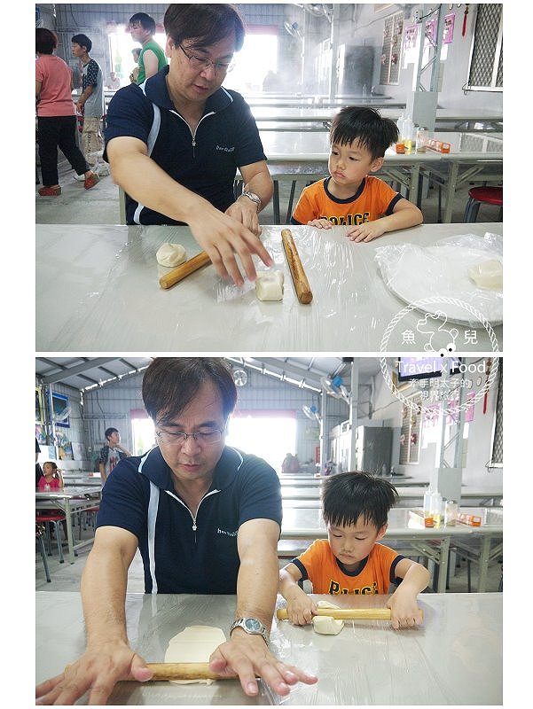 台上講解一遍,台下的親子組再開始進行,明太子正有模有樣的學著拔拔桿麵皮,架勢可不輸大人。