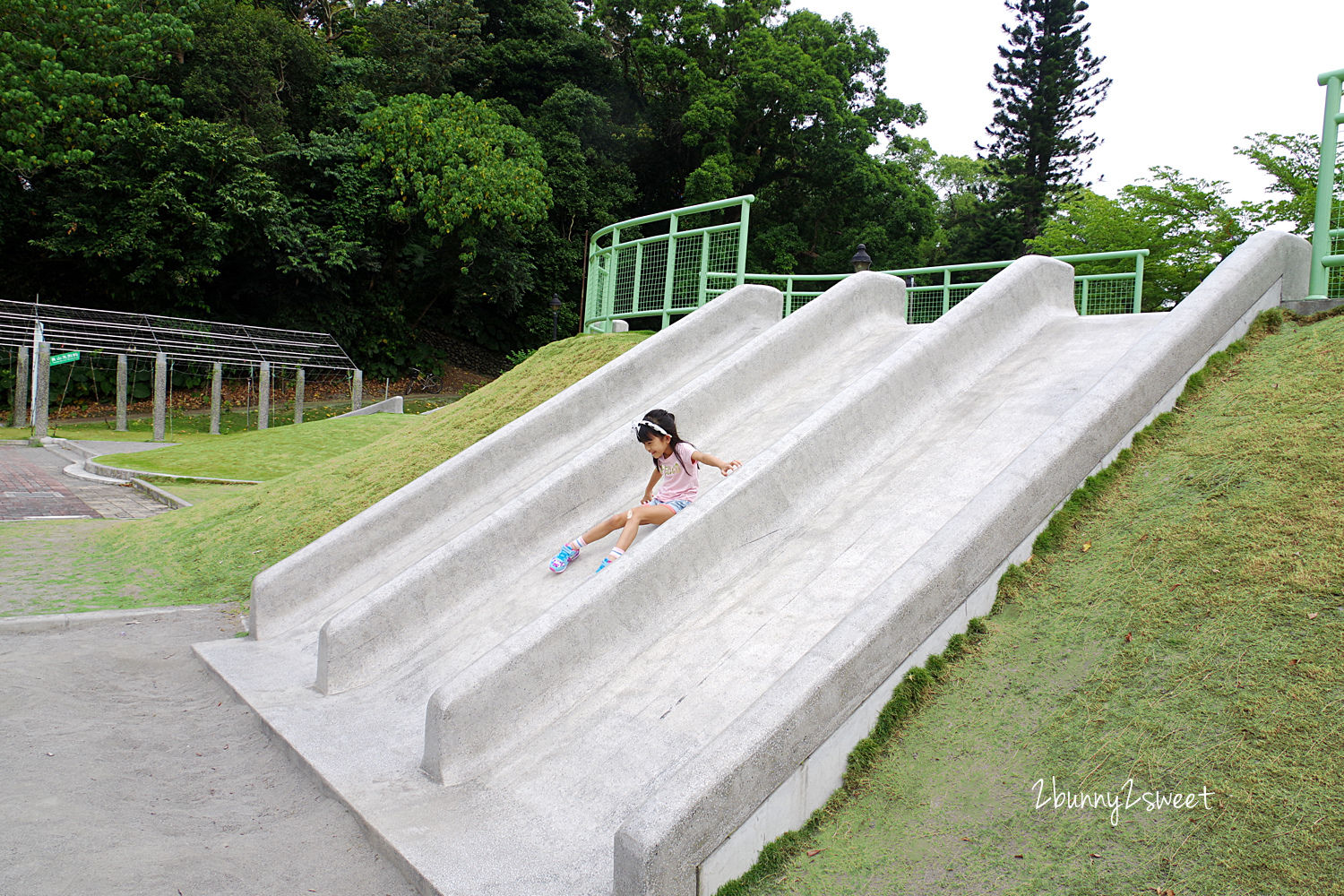 【員山公園】在2017年興建了石頭溜滑梯,溜滑梯依著起伏的小山坡建築,看起來挺可愛的~