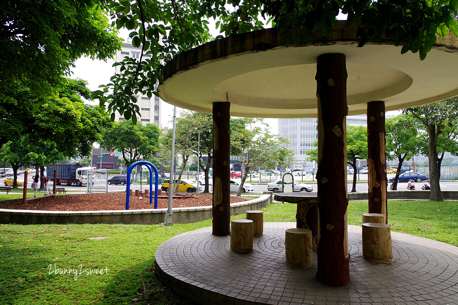 遊戲區周圍中了一些樹,也設置了好幾張公園椅,大人可以躲在樹蔭下陪孩子~