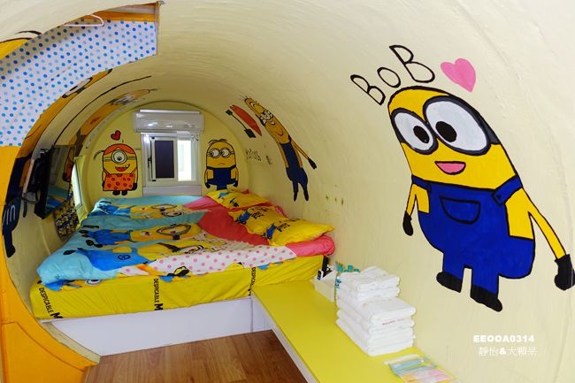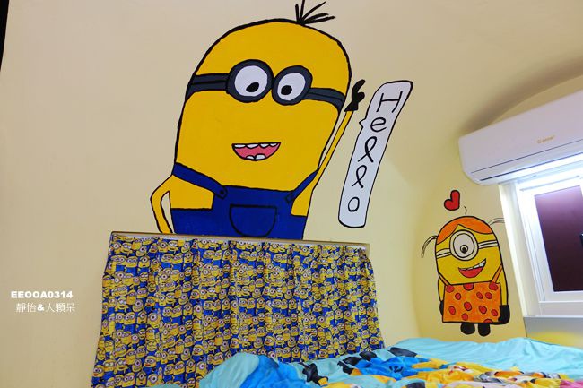 一推開房門孩子好興奮~是孩子們喜歡的小小兵,水管屋裡到處都可以見到小小兵的身影,而且空間比我想像中還要大,不會過於壅擠