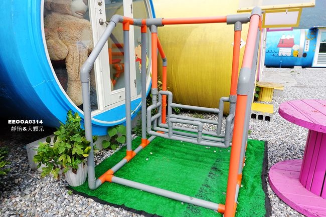 穿過水管後即可已進入秘密基地唷~裡面是餐廳也有兒童遊樂設施可以玩樂,帶孩子入住水管屋完全不無聊,不過下雨天就會比較不方便