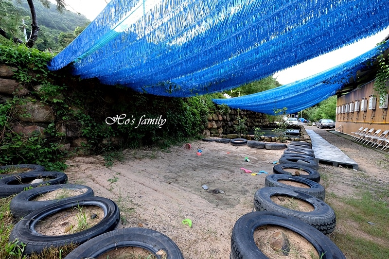 外面也有戲水池及沙坑,來水岸松林農場露營區露營孩子都玩瘋了!