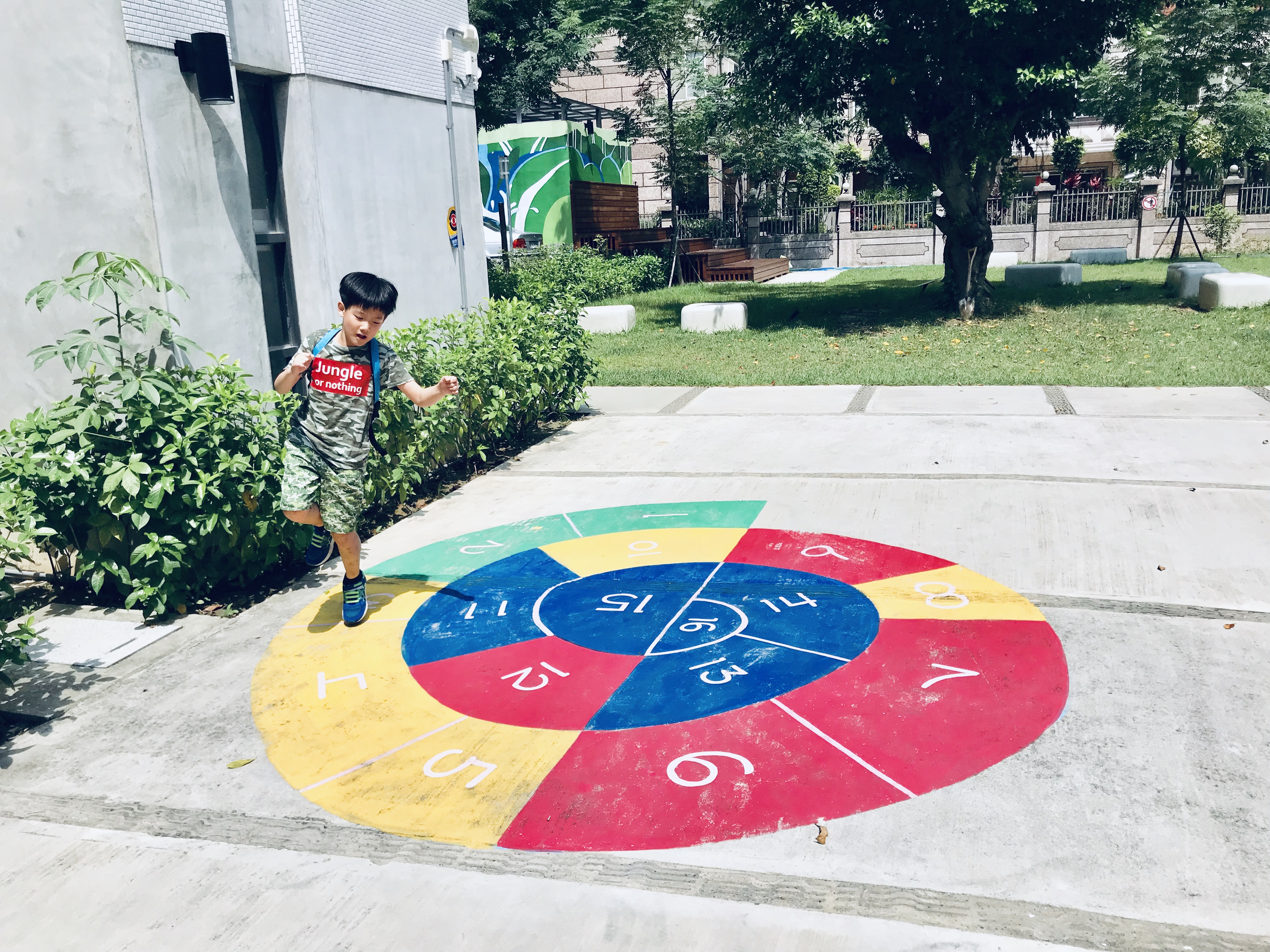 地上有彩繪磚,壁上是彩繪牆,多麼色彩繽紛的空間,孩子很喜歡呢!