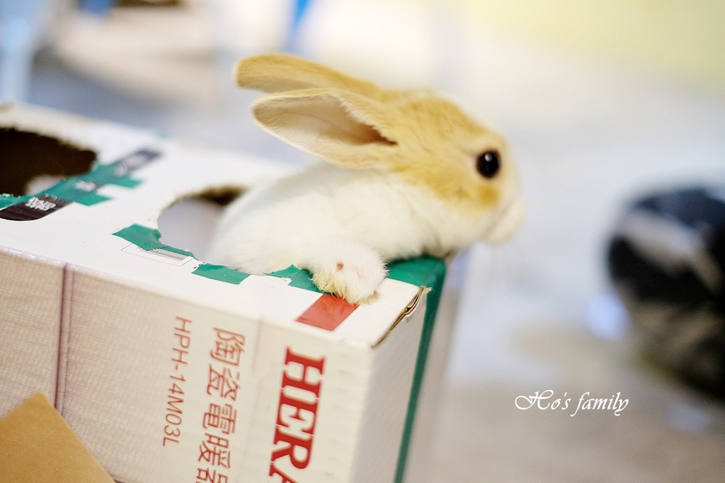 最吸引孩子的就是有好幾樣小動物,貓咪、兔兔陪伴大家,近距離親近讓人都融化了!外面下著雨,在屋內的我們溫暖而又開心地度過一下午…