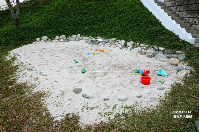 除了各式美拍裝置外,對於親子也很友善,園區內的大草皮上還有規劃戲水池、沙池及蹺蹺板等設施,大人開心美拍聊天時,小捧油也不無聊,可以盡情玩樂放電,不過還是要隨時注意孩子安全唷~