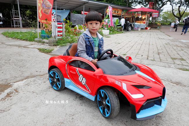 小火車終點站這裡還有許多好玩的設施喔,像是電動車、卡丁車等,如果不想讓小捧油玩就不要讓他們見到了,不然鐵定直吵要玩,電動車紅色一次$100元、白色可兩人乘坐,一次原本$300元,後來算我們$200,一次可玩15分鐘,電動車可以開上去隧道,但要隨時注意孩子安全喔!