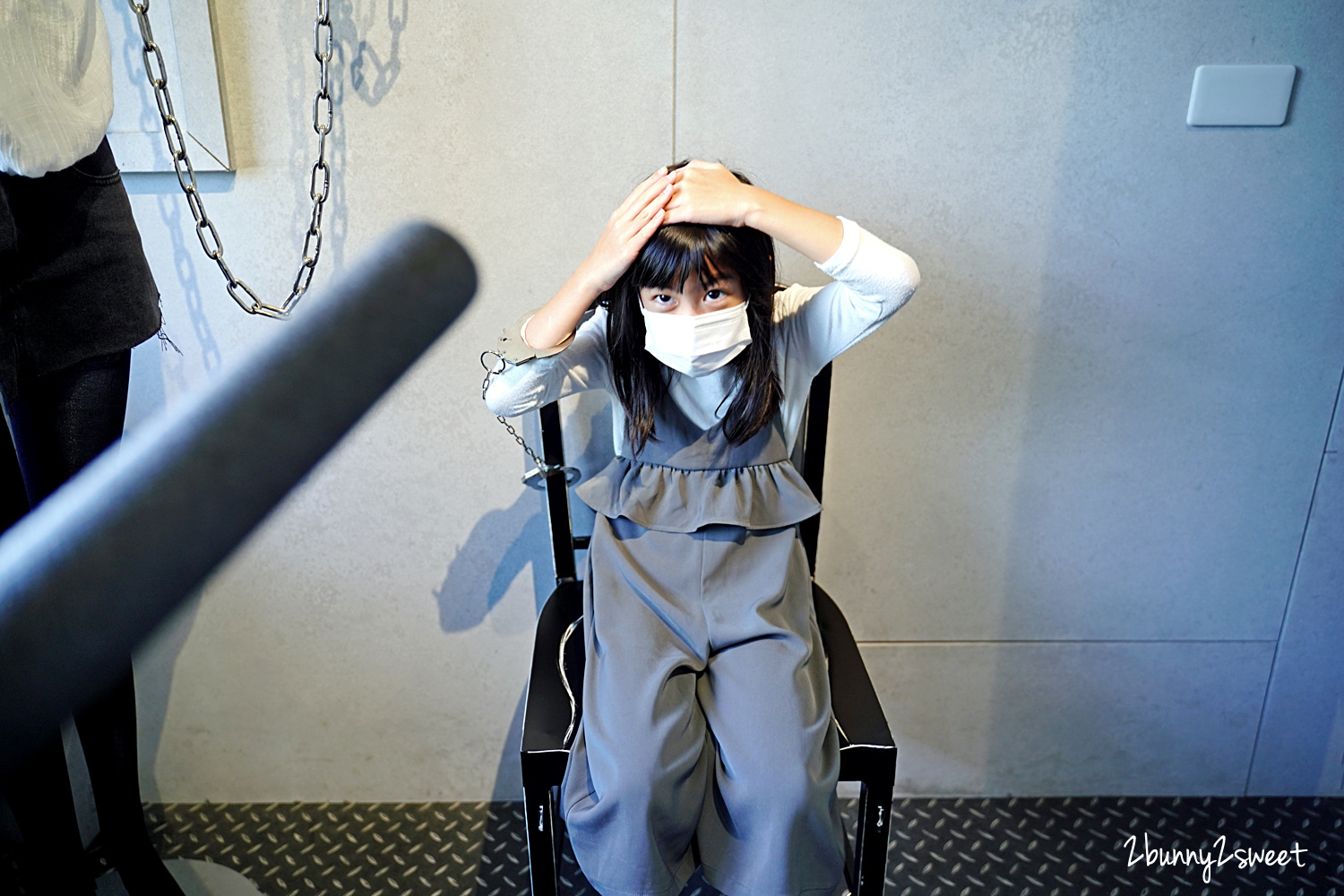 【宜蘭金特務 007】就有這樣一個拷問區,把敵人銬上手銬、用棍棒亂打一翻來逼問出重要資訊~真的挺有趣的