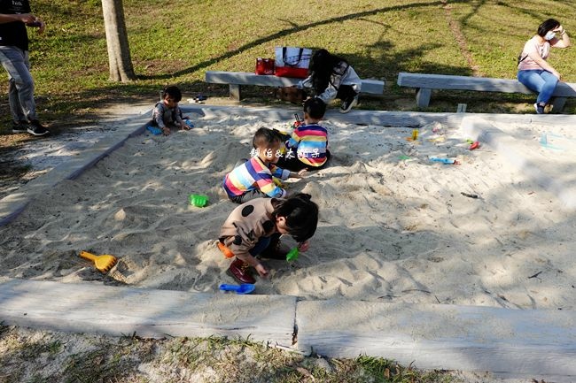 小朋友在玩沙,我們大人就在一旁野餐聊天,記得自備野餐墊,另外沙坑旁也有一座涼亭