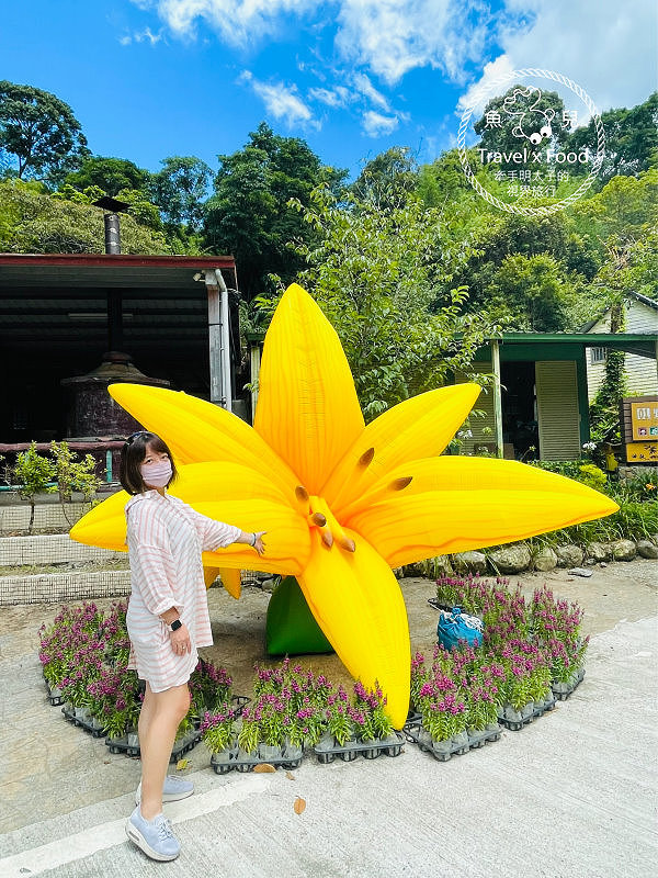 搖晃中來到了野百合農場,一朵大金針花讓地標變得很醒目,