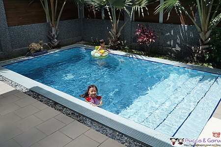 Pucca開心大喊: 「媽媽! 我站在泳池裡了耶! 我沒有吃到水喔!!!」 是不是! 很棒吧!