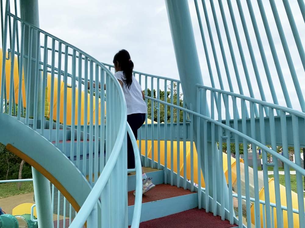 ▼通霄之塔溜滑梯旁邊的是多彩的立體攀爬架