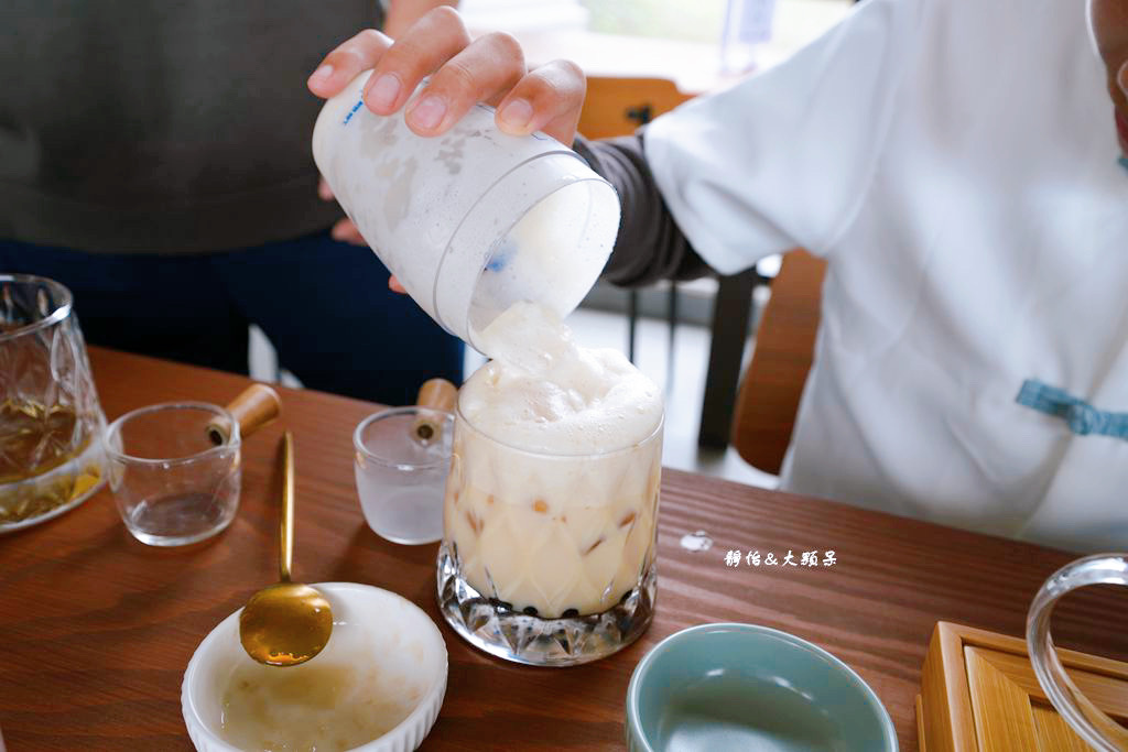 壺泡茶、冷萃茶後小朋友最期待的珍珠奶茶來了,有專業的搖茶工具及事先煮好的珍珠,糖水及冰塊可以依照個人喜好添加