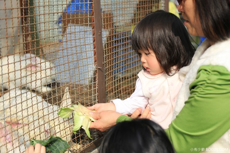看了看小朋友的高麗菜葉想說是哪裡拿的,原來是在一旁的大樹下有提供零碎的菜葉