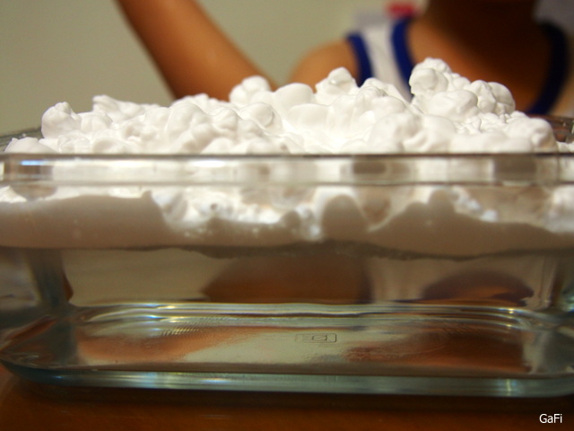 接下來,貓兒我請阿鼓在水上面加入一層厚厚的刮鬍霜當白雲~