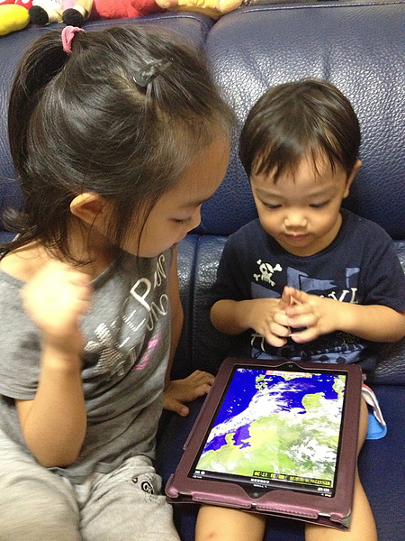 原本這是我跟女兒兩個偶爾會交流的話題,這一天弟弟也提起了興致,或許應該說他被iPad所吸引,因為也一同加入了研究衛星雲圖的話題之中。