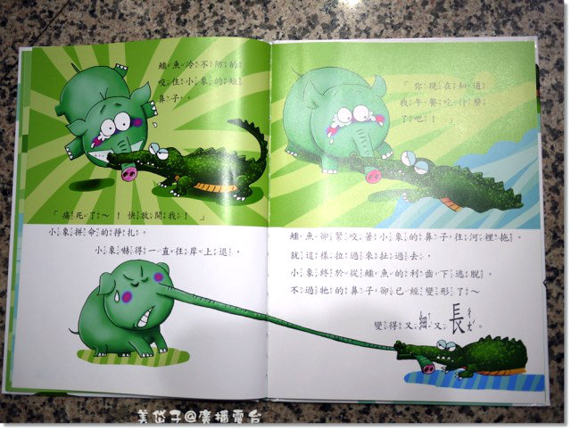 智彗星這套諾貝爾文學大師教閱讀與寫作的套書有6冊(恰巧是書單上編號的1-6),之前云云已經看過「駱駝的新駝峰」說的是辛勤與怠惰的故事,這本「大象大象鼻子長」說的確是好奇、積極與樂觀的故事,雖然云云還不到寫作的年紀,不過可以啟發孩子的想像力和創作力,最重要的是太好笑、太有趣,和孩子共讀時歡笑聲不斷