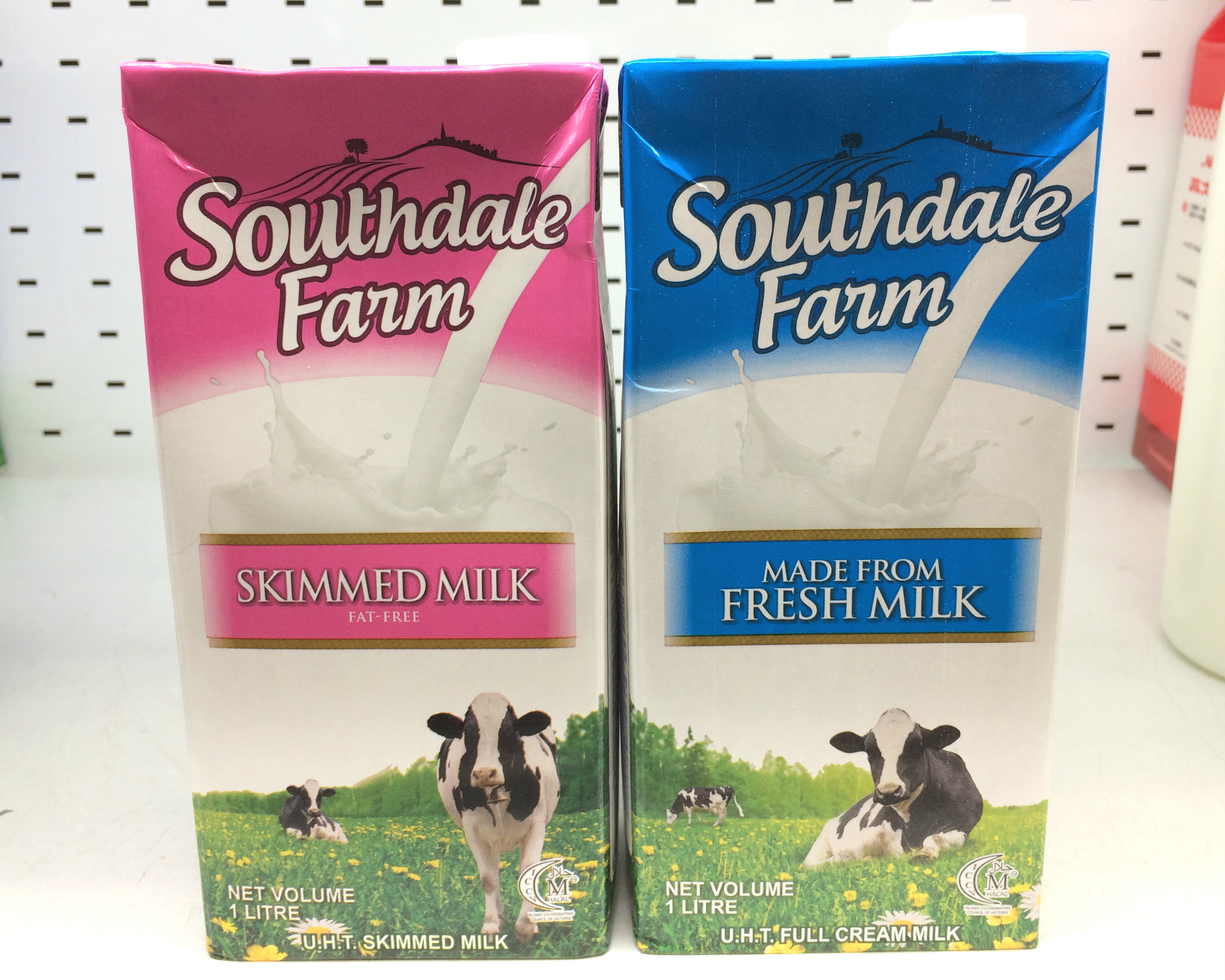 (左:來自英國的鮮乳,可保存9個月、右:來自北海道的鮮乳,可保存90天)