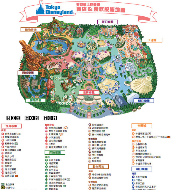 東京迪士尼相關設施&表演&商店&餐飲-地圖下載(下圖取自官網)