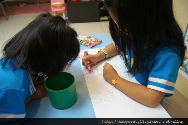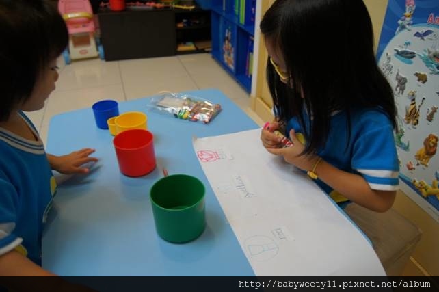 今天晚上陪 Bunny, Sweety 一起聽CD、閱讀美語故事,再由故事延伸一個玩水的活動,讓孩子比較杯子的大小,藉此訓練孩子科學的模式。