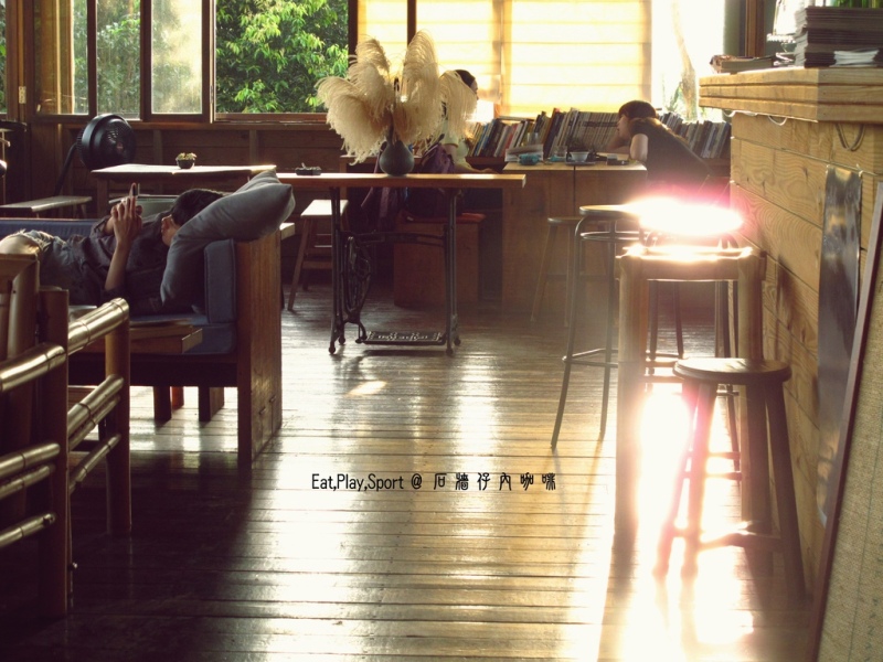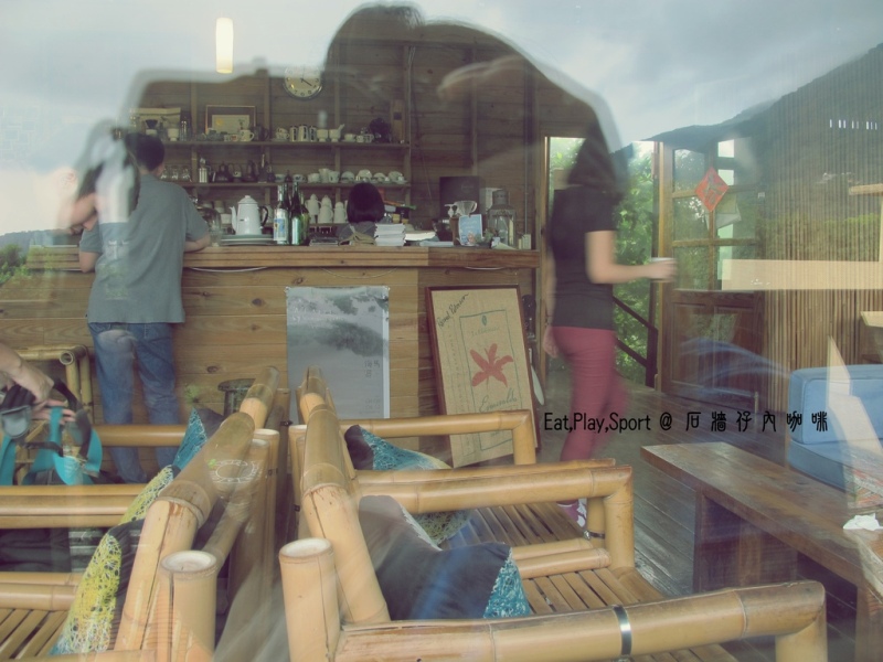 從咖啡店外面的走廊拍進來的照片,雖然都是木頭,但還是有那種方方正正的感覺。