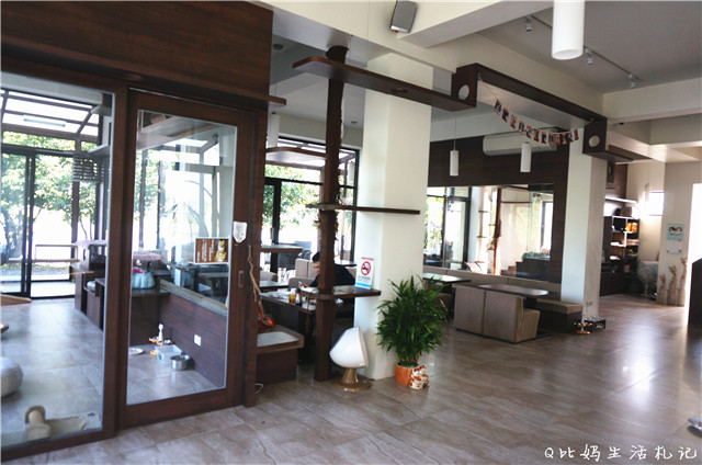由於屋內是採玻璃間設計,你也可以從用餐區清楚的觀賞到貓咪,靜靜的從遠處看著牠們。
