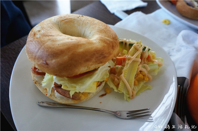 輕食部分Q比爸點了培根潛艇堡(圖1),我點了乳酪香腸貝果三明治(圖2)。