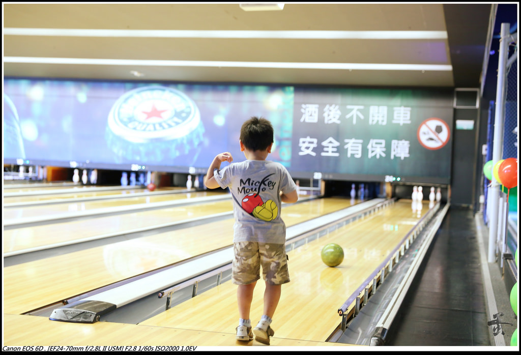 所以一次與同事在淡水海中天聚餐的機會下(美食照改天再PO),就帶小蛋去五樓保齡球館走走
