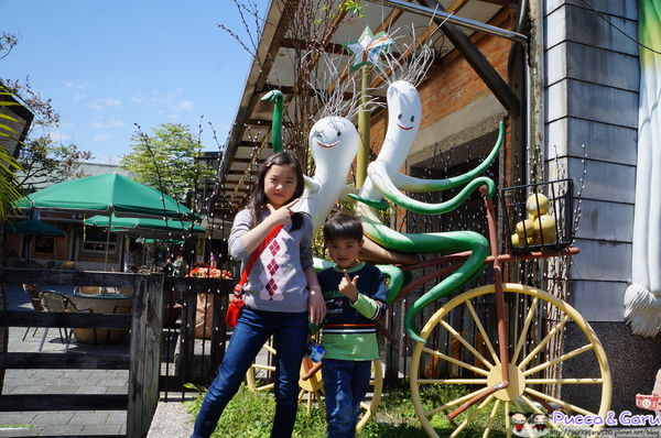 門口兩枚三星蔥娃娃騎著腳踏車很逗趣,Pucca和Garu說要來張帥的!