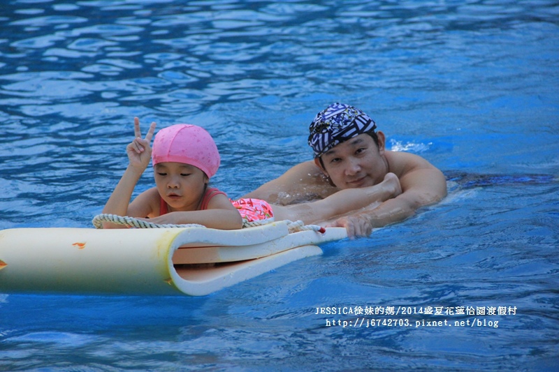 梳洗換好泳裝後,我們一家就前往玩水去,只是從住宿區到滑水道區有段距離,穿著泳裝還真有點不好意思> <