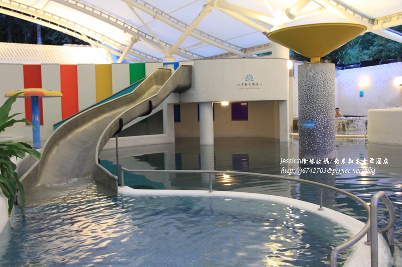 最後我們輪番在幾池不同口味的湯池泡湯後轉到游泳池玩水去