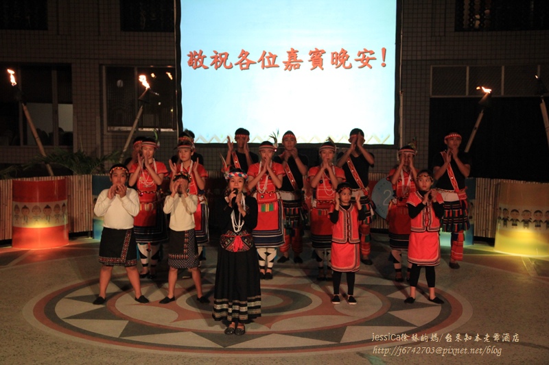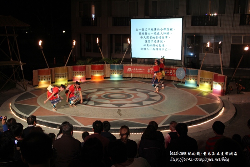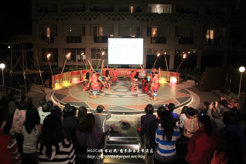 飯後大半的遊客都聚到這裡看原住民舞團的表演