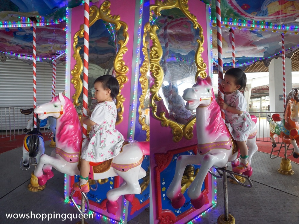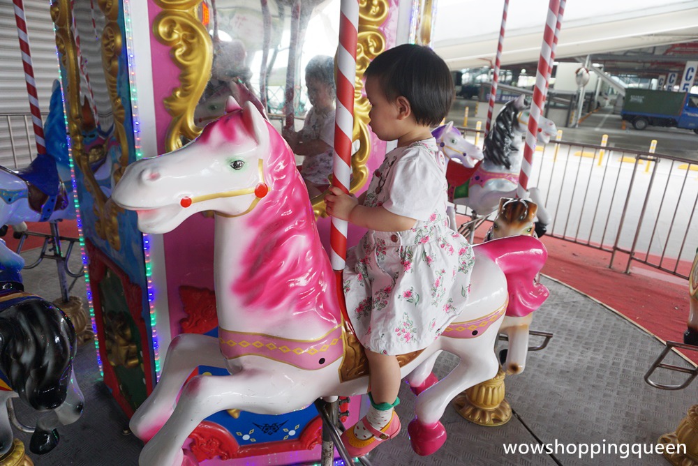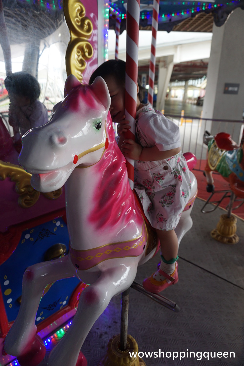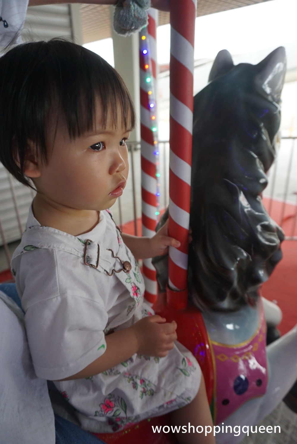 終於,他肯下車了之後,旋轉木馬跑了~~我們趕快去排隊,試營運沒什麼人,ㄧ下就可以上去了~~~