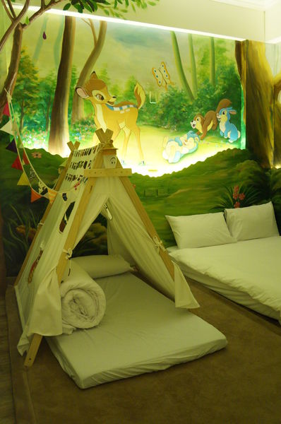 所有房間中其中一間沒有溜滑梯,就是「夜光森林」(邱先生一直想住這間!哈哈)