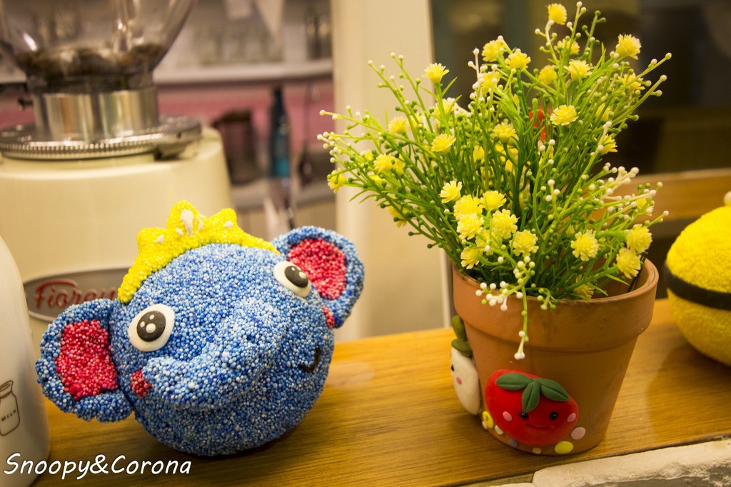 粉紅色溫馨的吧檯上還放置了許多可愛小飾品,也有現在流行的乾燥花元素