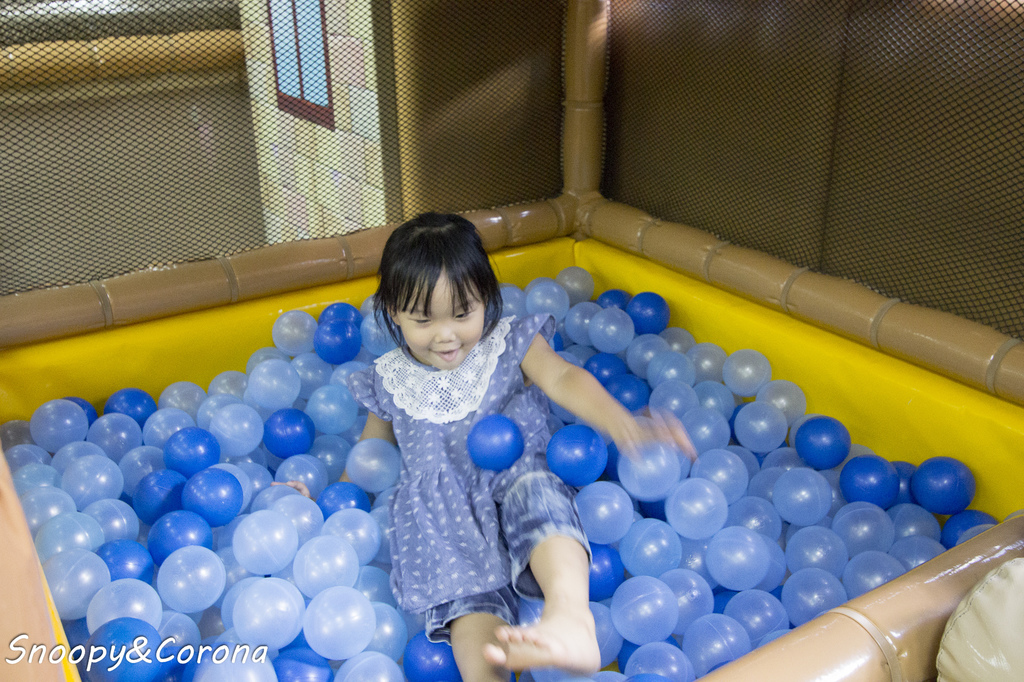 座位區旁的遊戲區主要是溜滑梯、球池及娃娃屋