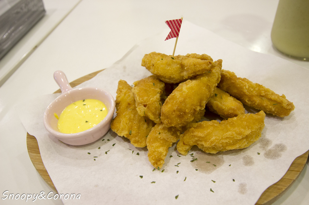 外酥內嫩的雞柳條不沾醬就很美味,鹹香涮嘴。