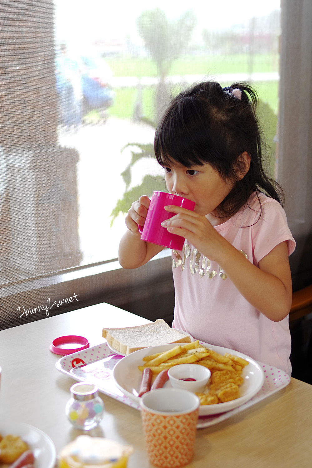 吐司本來是提供有抹醬的烤土司,只是當天的抹茶和大蒜口味兩姊妹都不愛,就請老闆給我們白吐司。