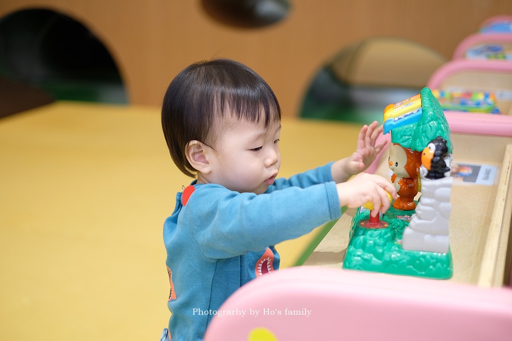 除了大小孩,小小孩也有樂子可以玩,這專屬學步兒及爬行兒的遊戲空間,附有軟墊、學步梯幫助孩子大肌肉發展,此外,有各種類型玩具、小型溜滑梯等,有動態也有靜態,全方面啟發寶寶感官與認知!