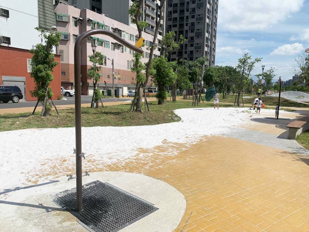 ▼沙坑區整體造型設計像一條河流,看起來範圍不大,但其實上面積還不小,可惜就是不能遮太陽。