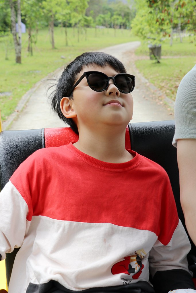 還好坐在遊園車上徐徐微風吹來,讓懶得走路的某小孩可開心的呢!!