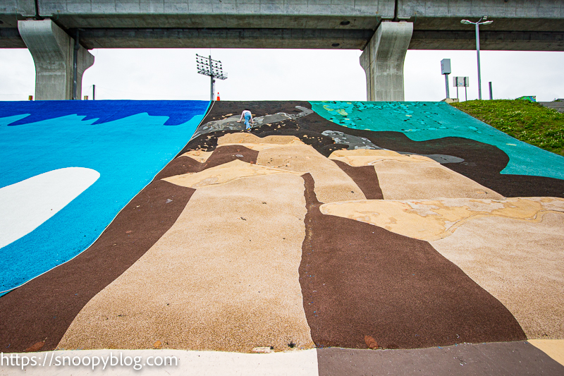 ⇒新北大都會公園幸運草地景滑梯~7米高管狀滑梯、巨型攀爬網、彩色攀岩坡道
