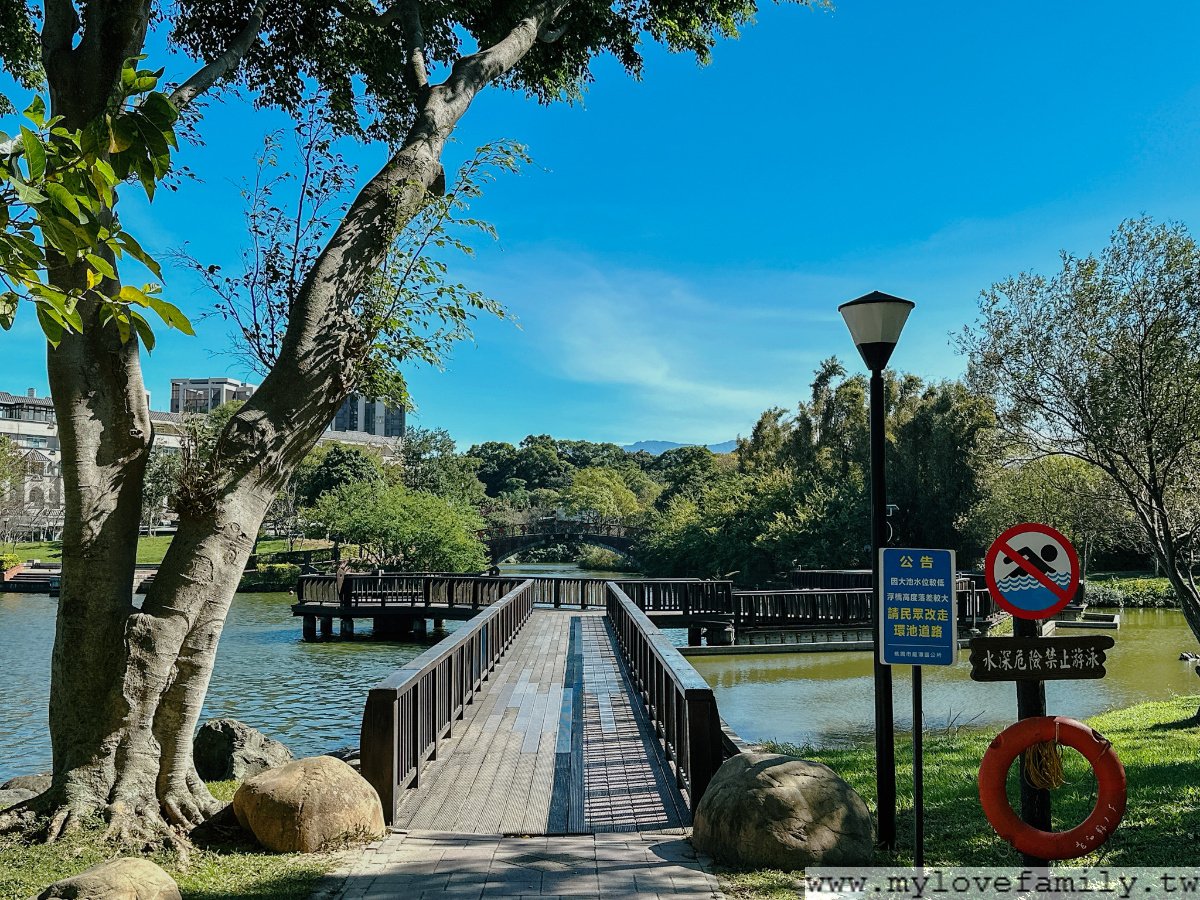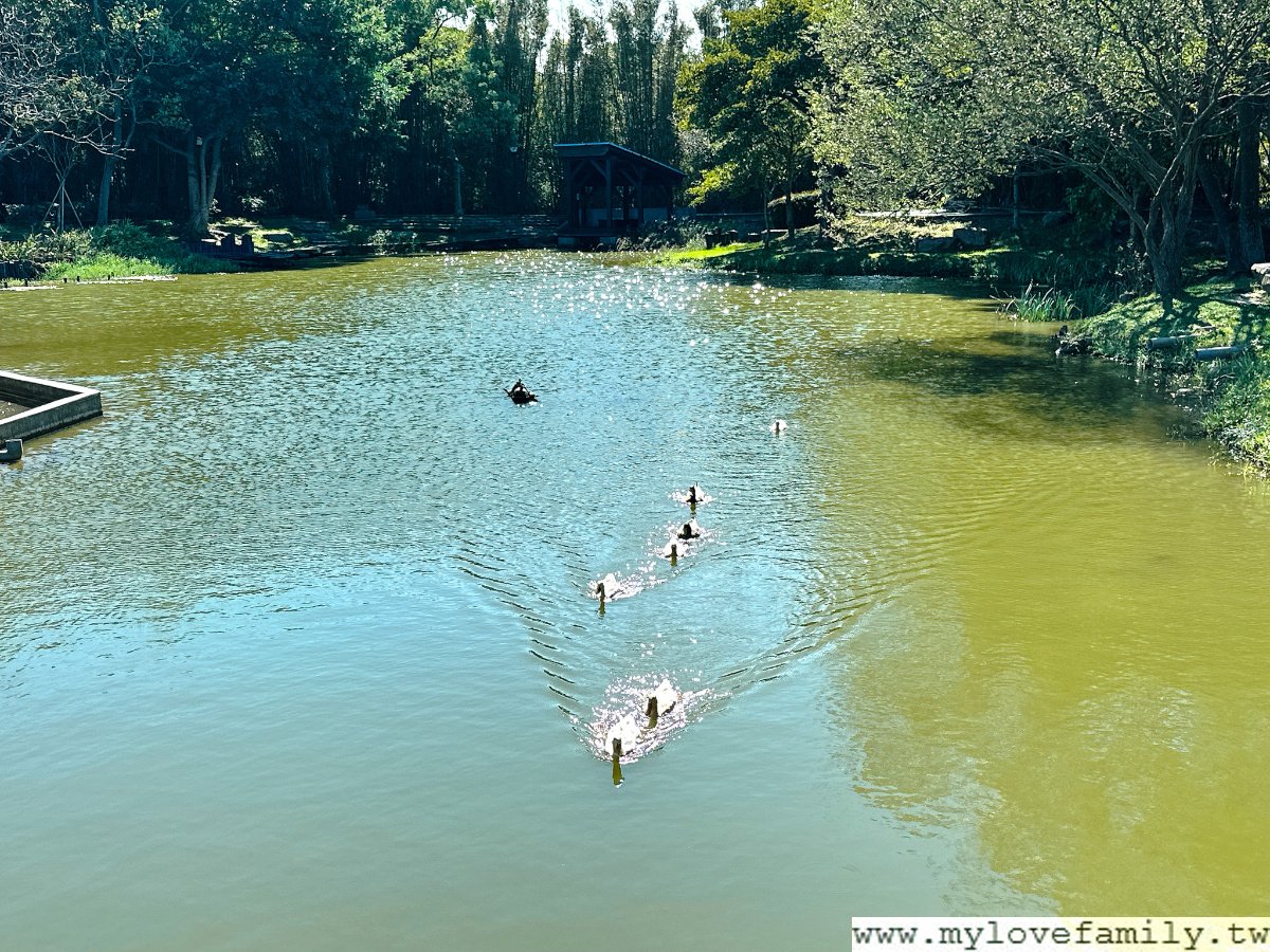 大池中的木棧道輕鬆走,而水中還有烏龜、魚群、鴨子漫遊著。