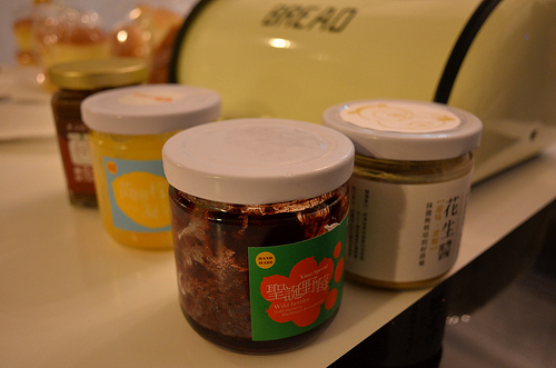 然後冰箱的抹醬有四種口味,野莓、花生、俄羅斯紅茶、威士忌柑桔