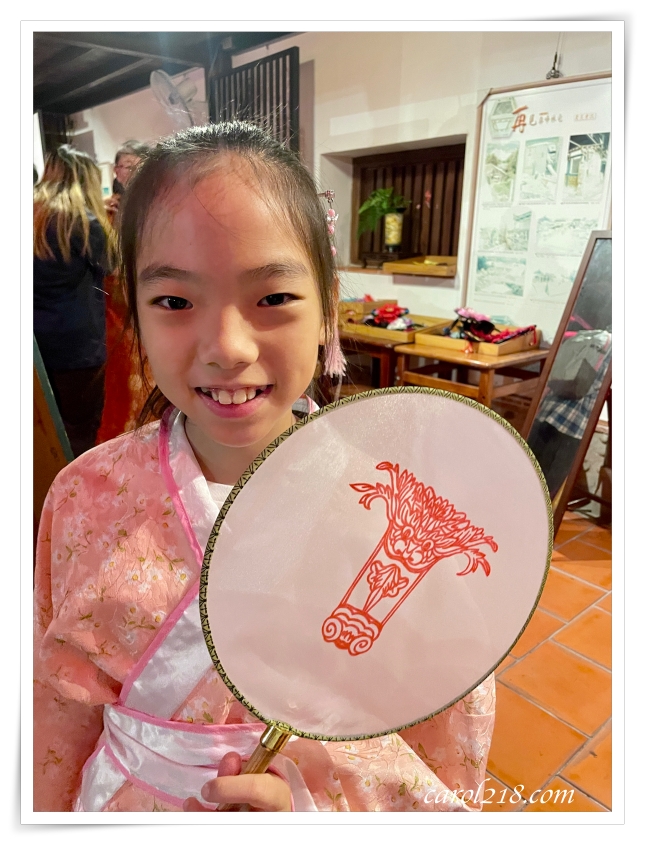 接下來會有段自由活動的時間,參加的遊客們可以進行絹印扇子的活動以及挑選自己喜歡的古裝換上