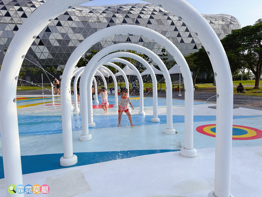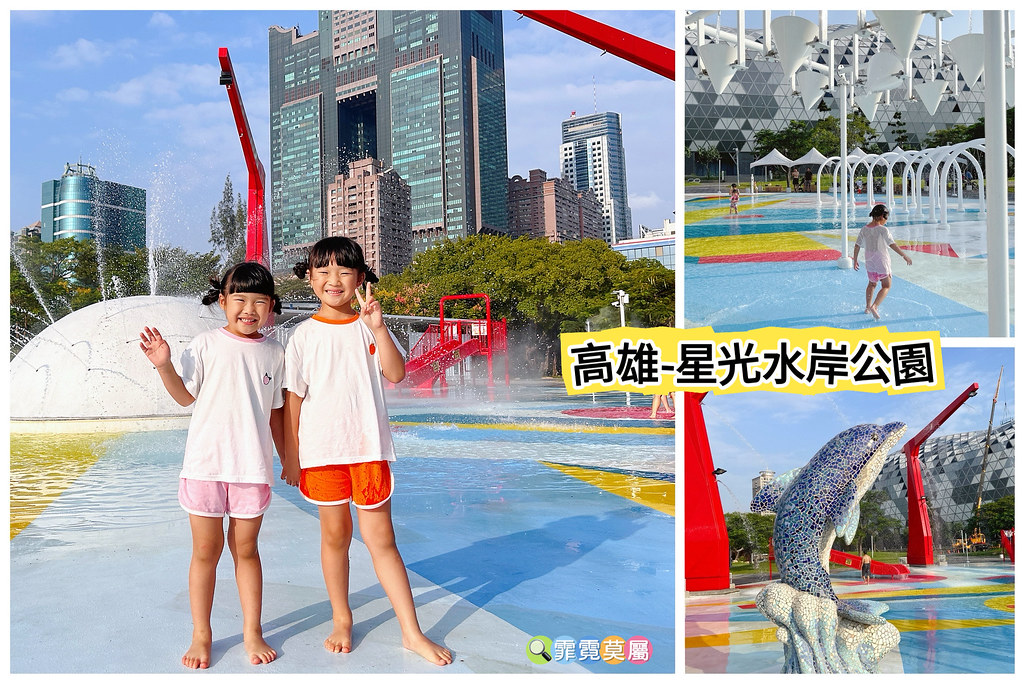 高雄星光水岸公園 位於高雄展覽館後方,主打免費玩水的特色公園,以高雄港口吊臂造型噴水器為主題非常有特色! 不用換泳裝就能直接下水,設施包括水槍、噴水溜滑梯、巨大噴水器和360度半球型的噴泉設施,非常的消暑又好玩! 還提供了沖洗更衣間讓遊客可以更方便玩耍。