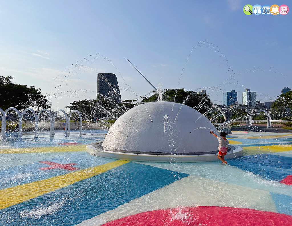 高雄免費玩水點主打以特色港口吊臂造型噴水器為主題,不用穿泳裝直接就能下水~超消暑又涼快的公園,好適合夏天帶孩子來這玩。