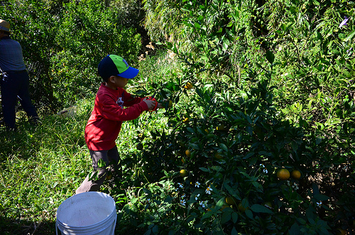 該怎麼說呢,剛開始的時候覺得跟我想像的不一樣,路的右邊是整個果園,原本以為會在那裏採橘子,後來發現這次採橘子只有在左邊一個小坡上,總共大約不到30棵果樹,大嫂家人上週來採一次,今天我們又去採一次,而且我們一行超多人(大嫂家已經來採三年了)