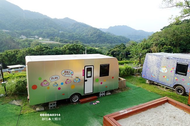 圍繞著沙池有幾台露營車,其中一台規劃為球池,另一台為書屋,也是不錯的兒童小天地,這樣就算碰上下雨,小捧油還可以玩球看書!