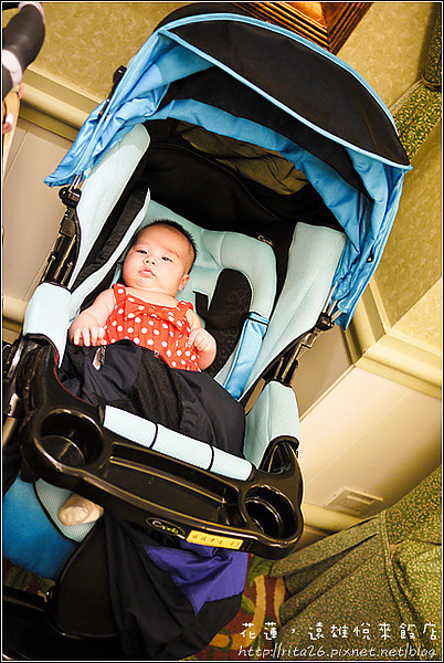 硬是把我紫色花轎那台給比了下去哩!!這是當時只有三個月大的小貝兒坐的飯店推車的樣子